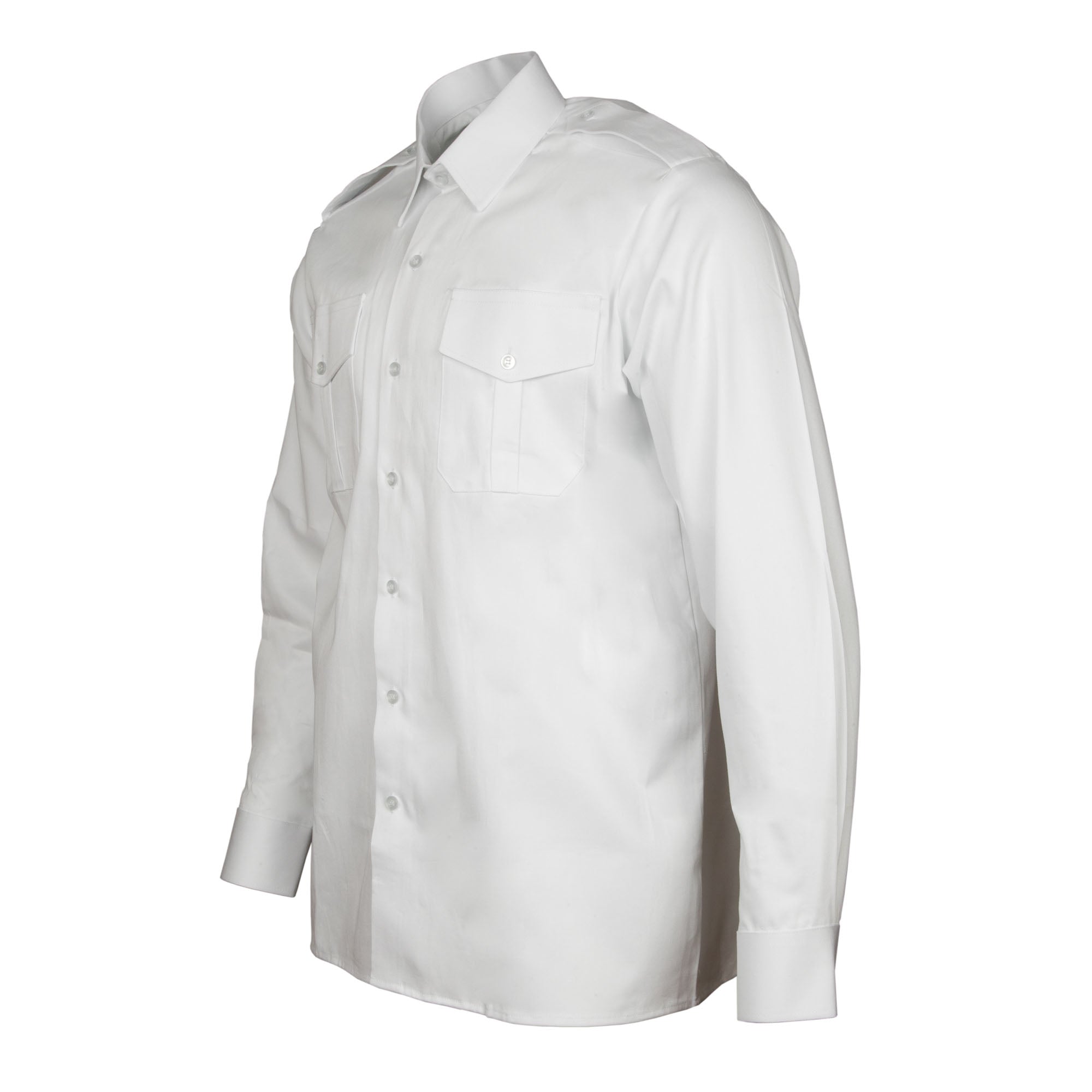 Made from a poly-cotton blend. Regulation Officers white shirt with epaulettes, available in a full range of sizes.